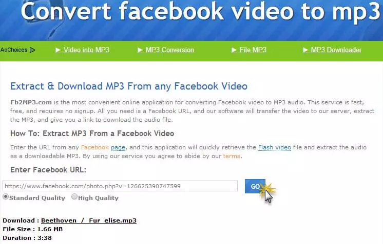 Using it to convert Facebook video to MP3 online is simple: